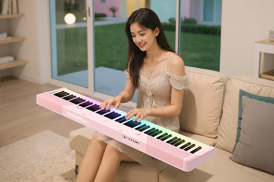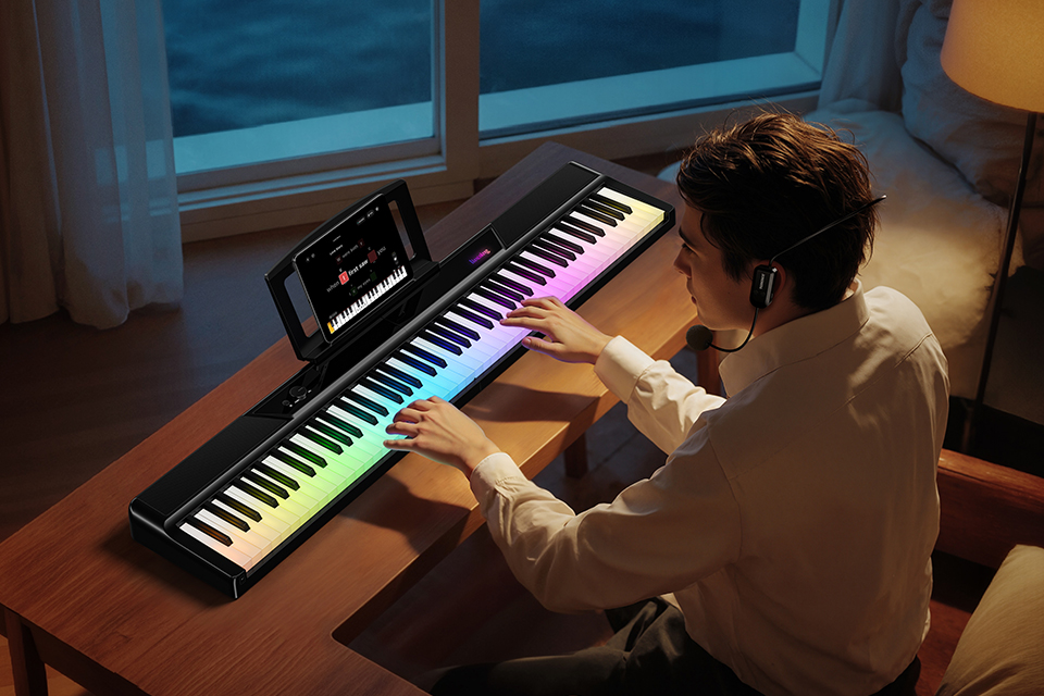仿象牙質感的鋼琴鍵盤,更接近傳統鋼琴的觸感,模擬鋼琴的下鍵深度、更高靈敏度的鍵盤反饋,彈奏時能表現出細致的強與弱,更接近真實鋼琴演奏感;每一次力度調整,都能清晰感知旋律變化。 |